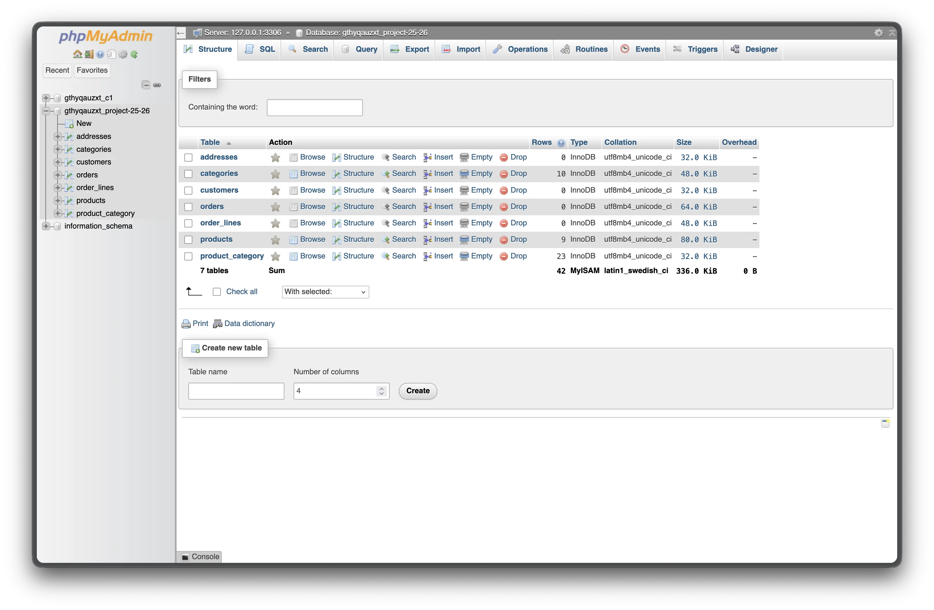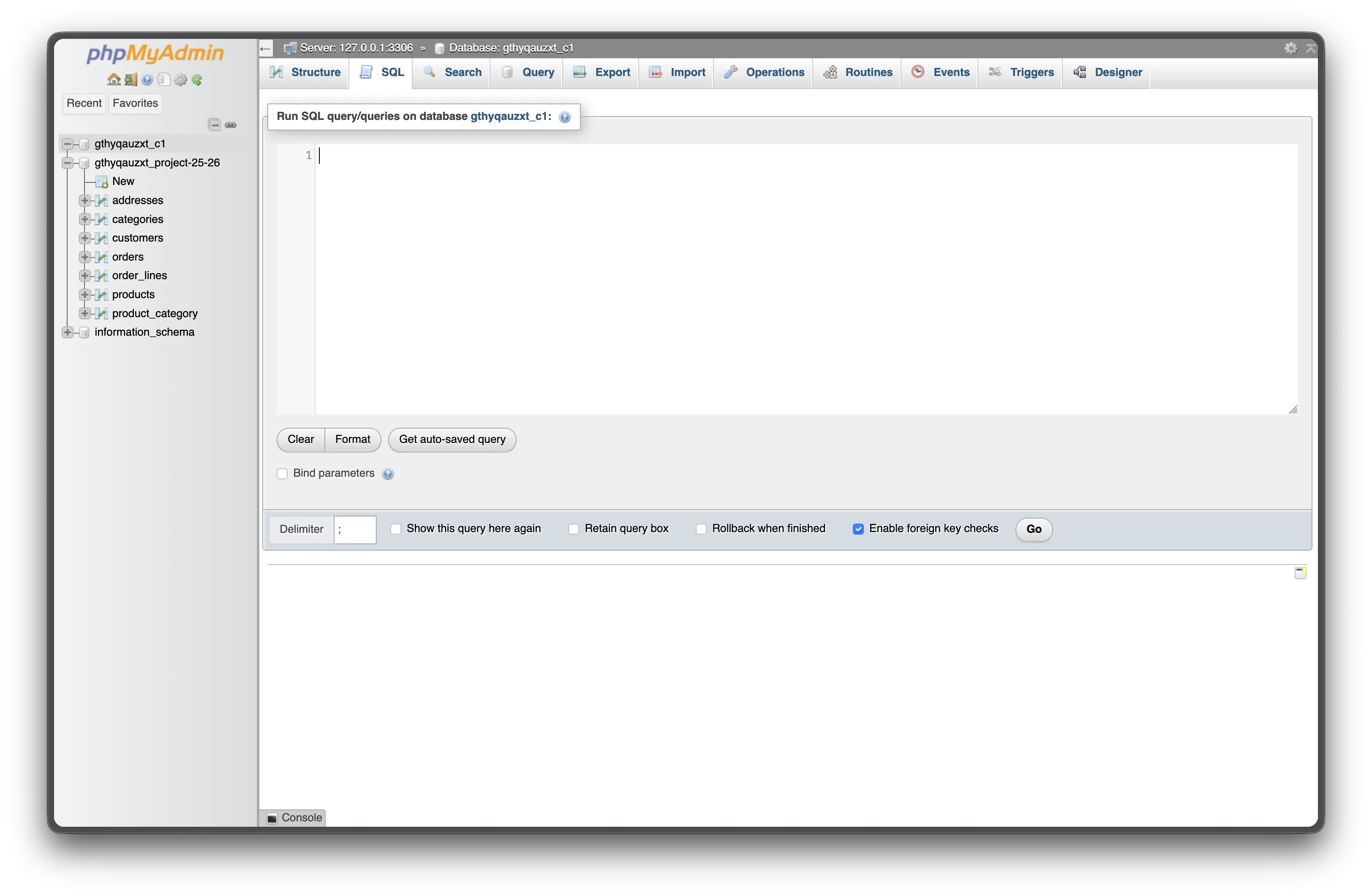 En ouvrant une base de données, vous pourrez créer, ajouter ou modifier votre base de données via l'onglet SQL tout en haut et y injecter vos requêtes de création de tables.