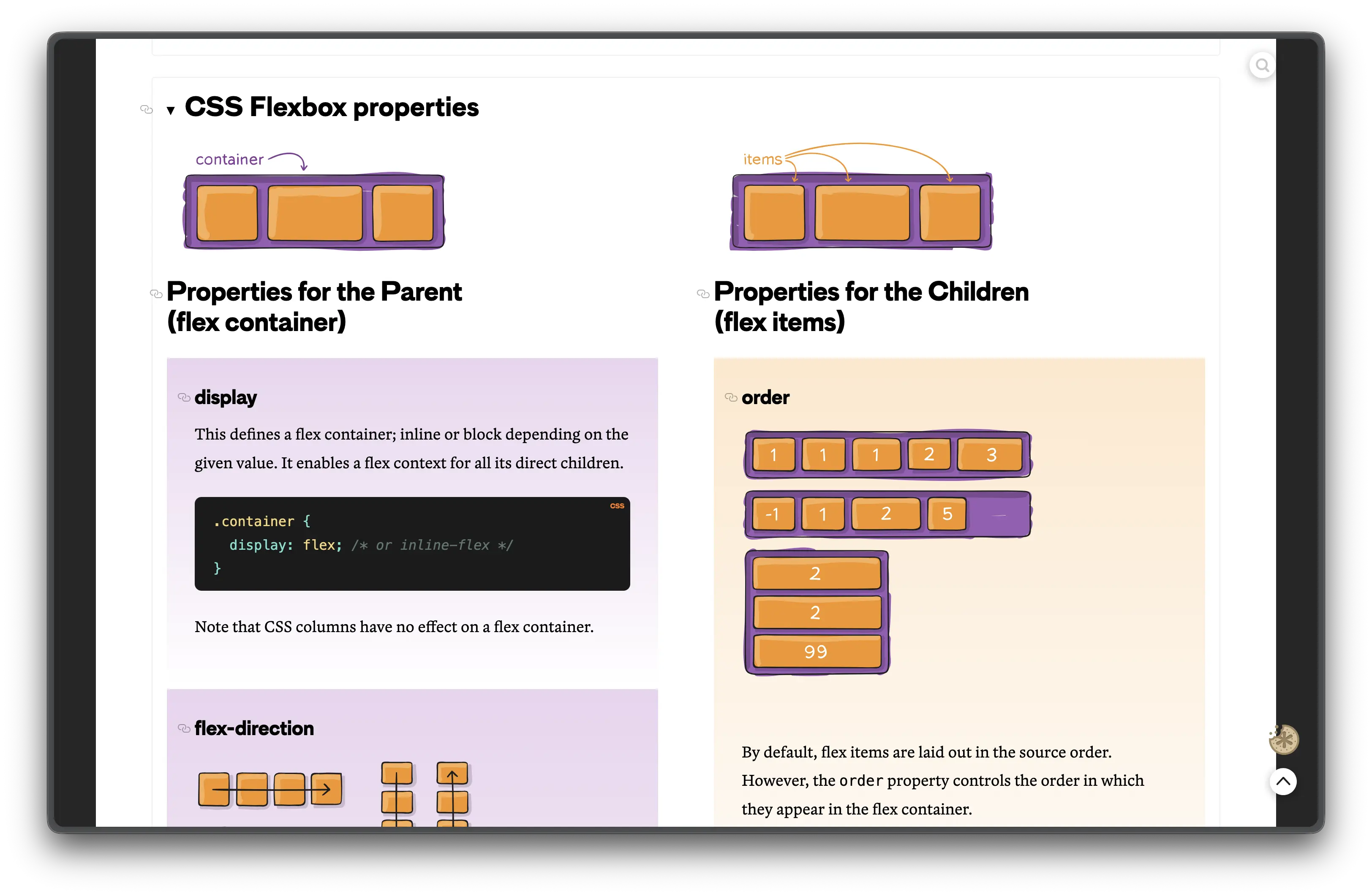 Ces propriétés ne peuvent s'appliquer qu'aux enfants directs d'un élément en display: flex; ou display: inline-flex;.