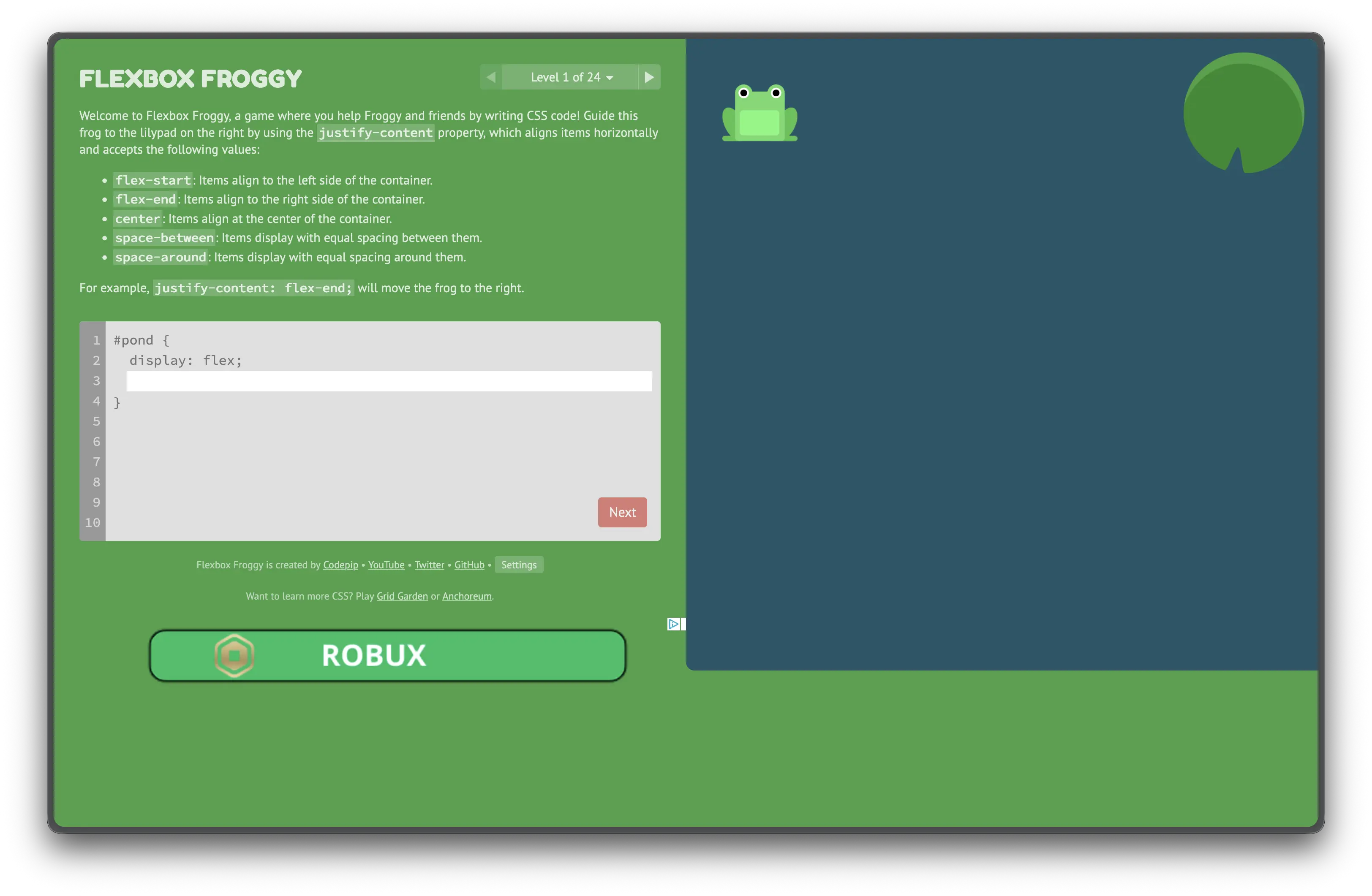 Défini comment l'espace disponible sur le main axis de notre flex container doit être réparti sur nos flex items.