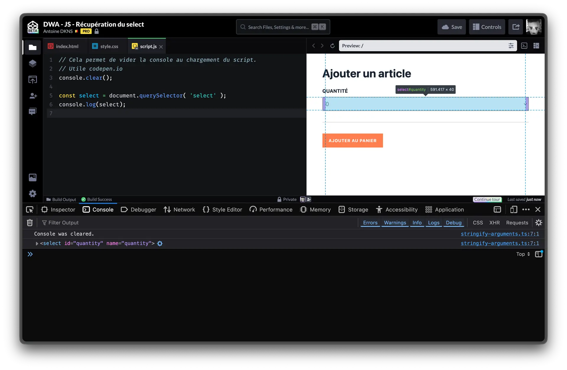 Essayons maintenant de récupérer notre select :