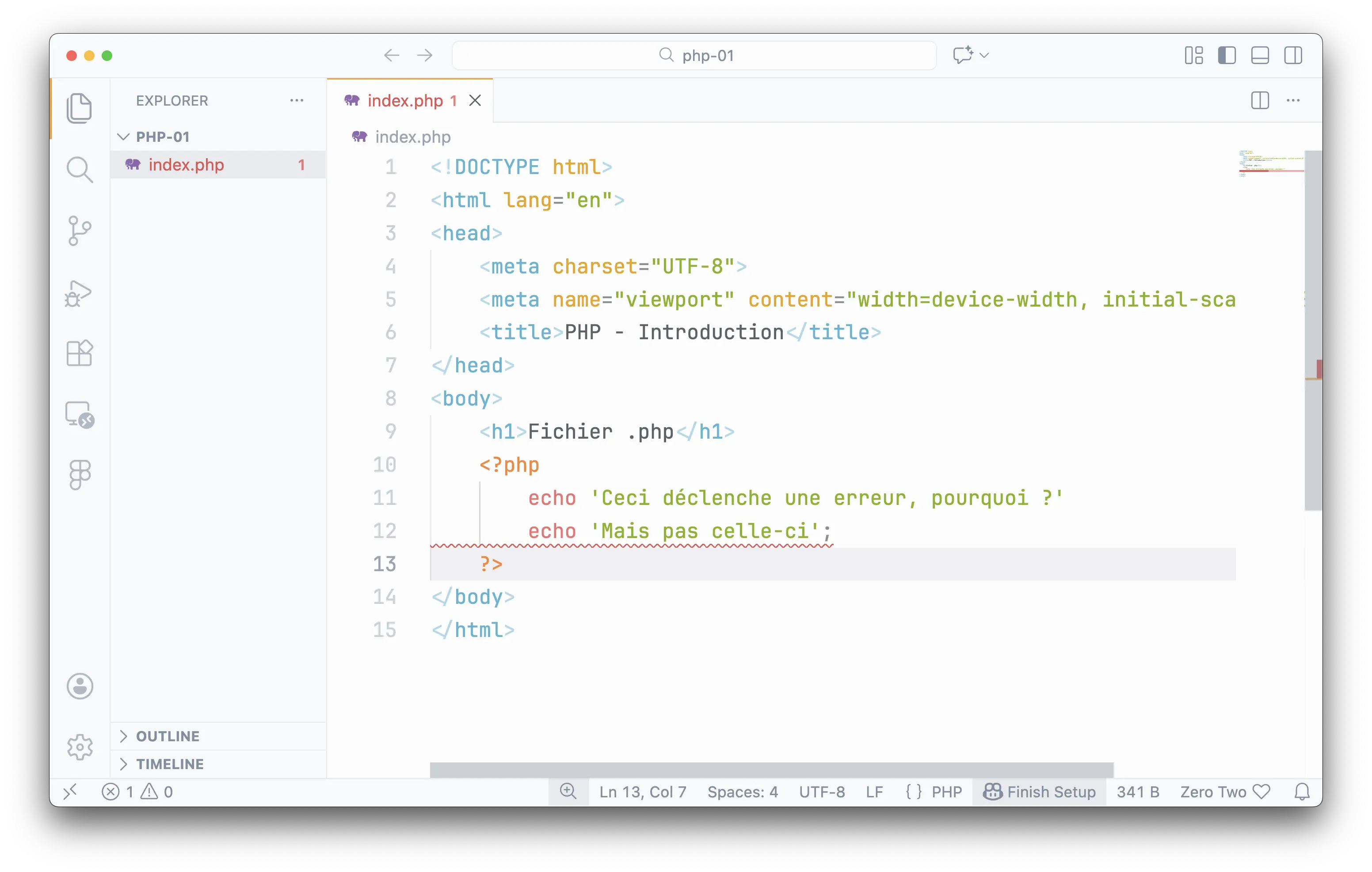 PHP nous facilite le débugging en retournant des messages d'erreur s'il en détecte :