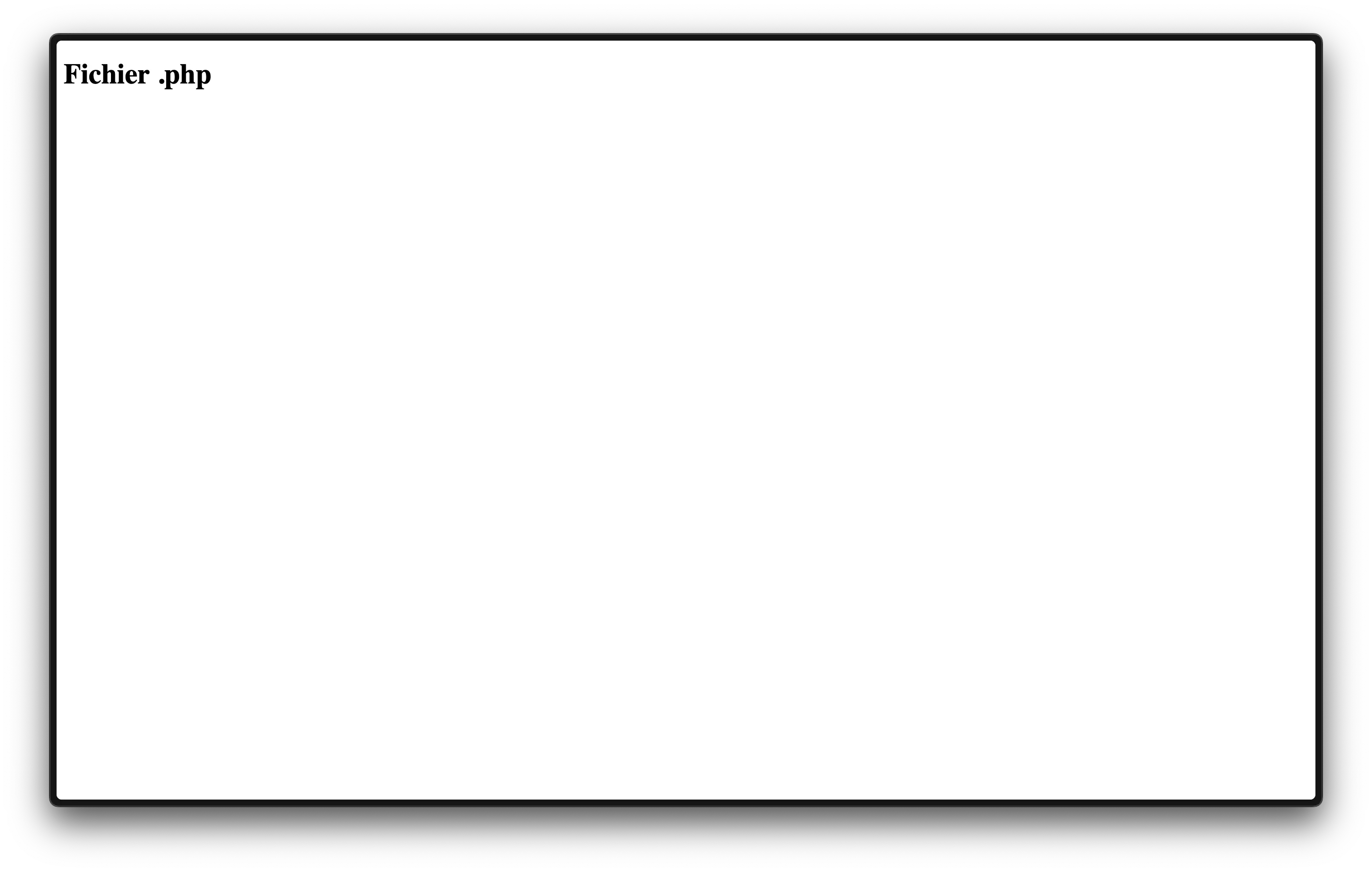 Si nous voulons exécuter du code PHP, il va falloir que nos fichiers .html changent d'extension pour .php.