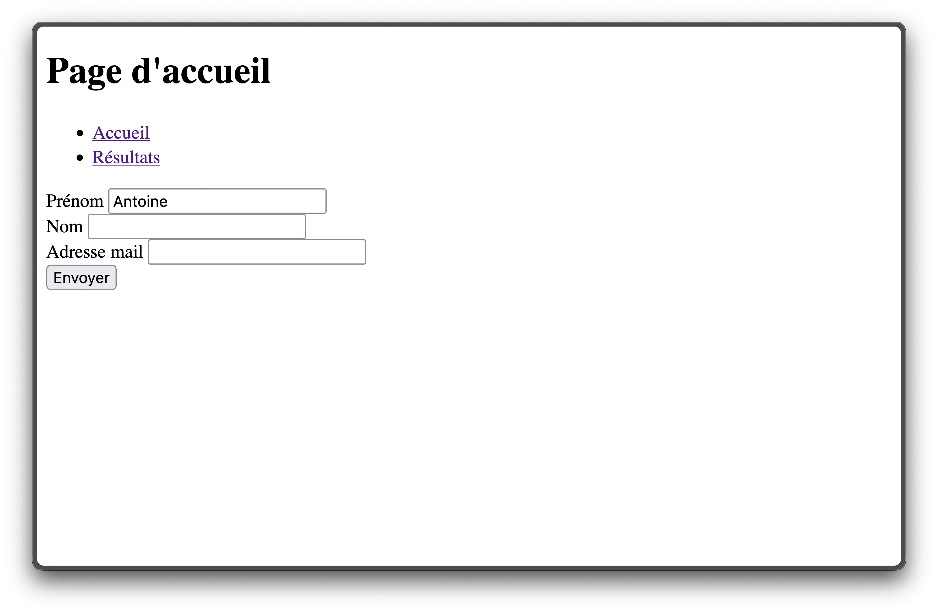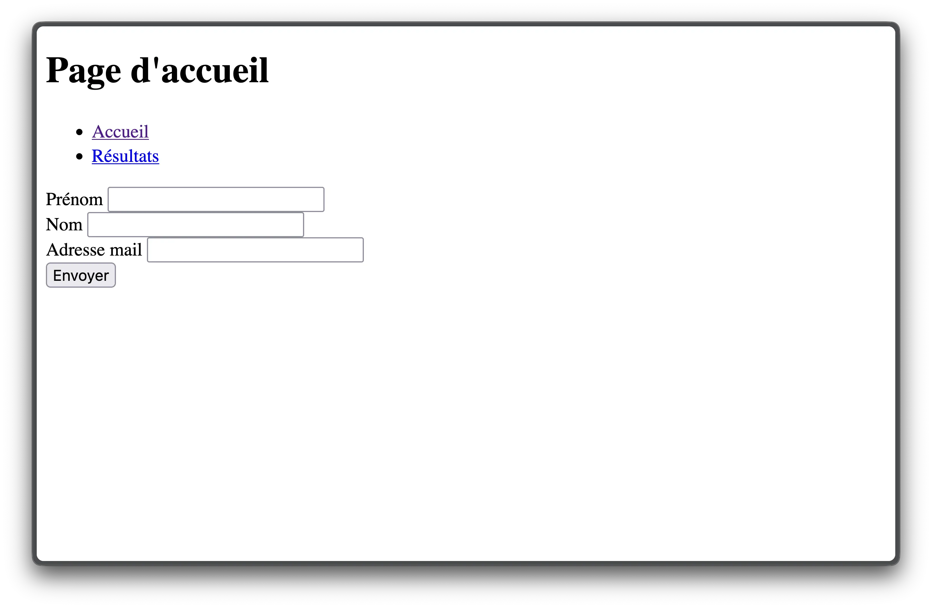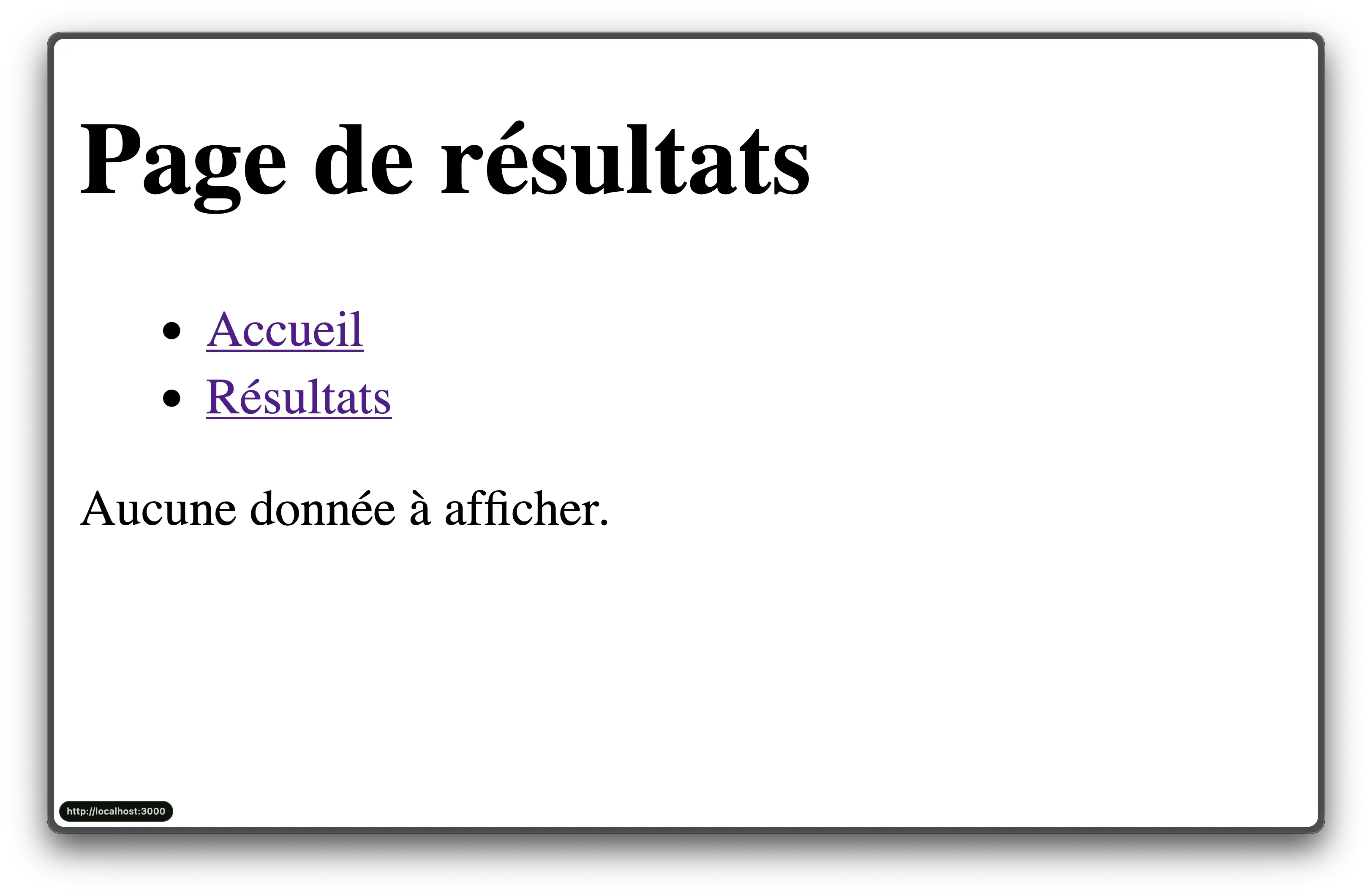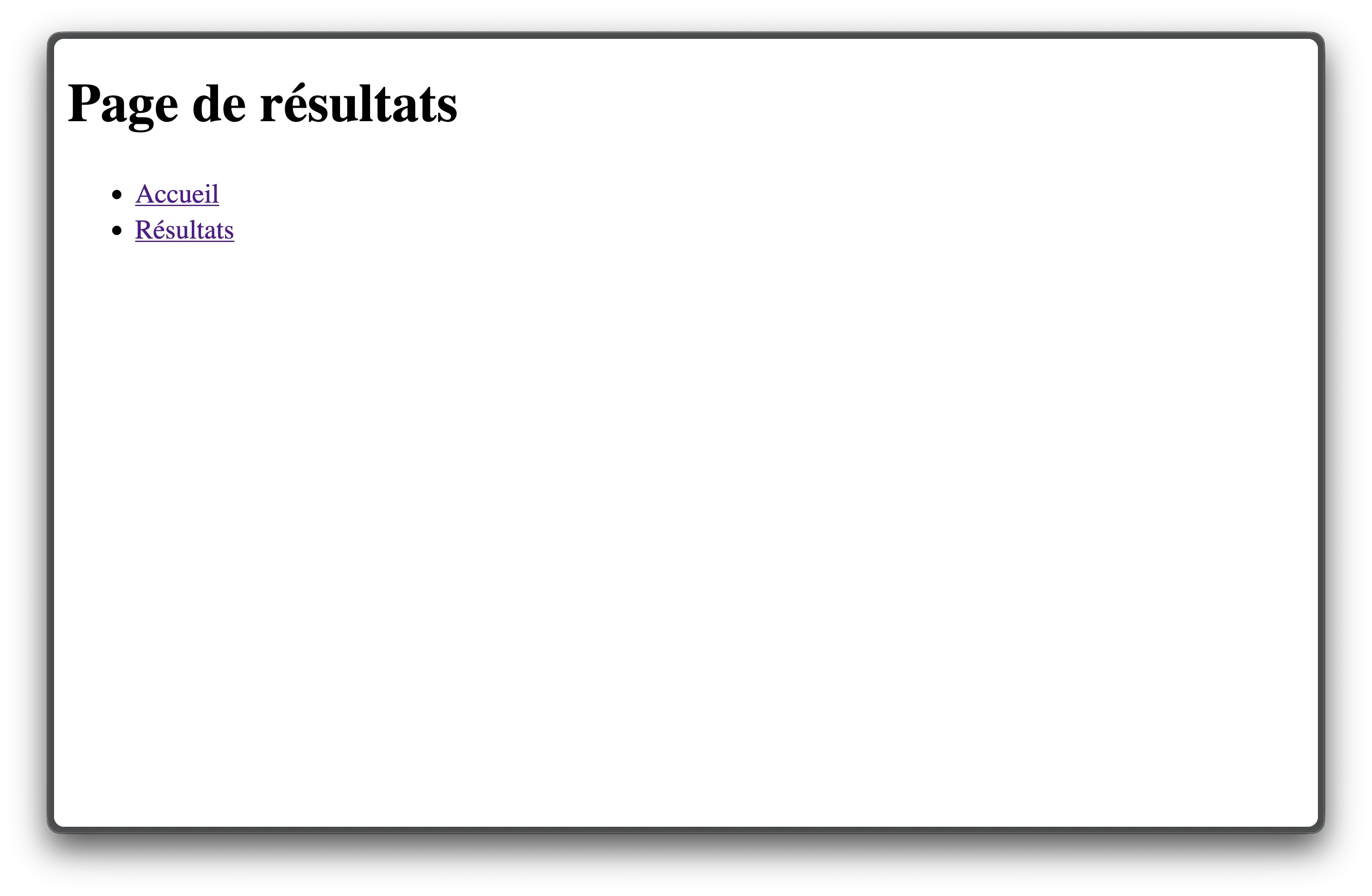 Afficher la valeurs des 3 champs dans la page results.php comme sur l'image suivante. Il faut aussi prévoir les cas de figures où les champs sont vides.