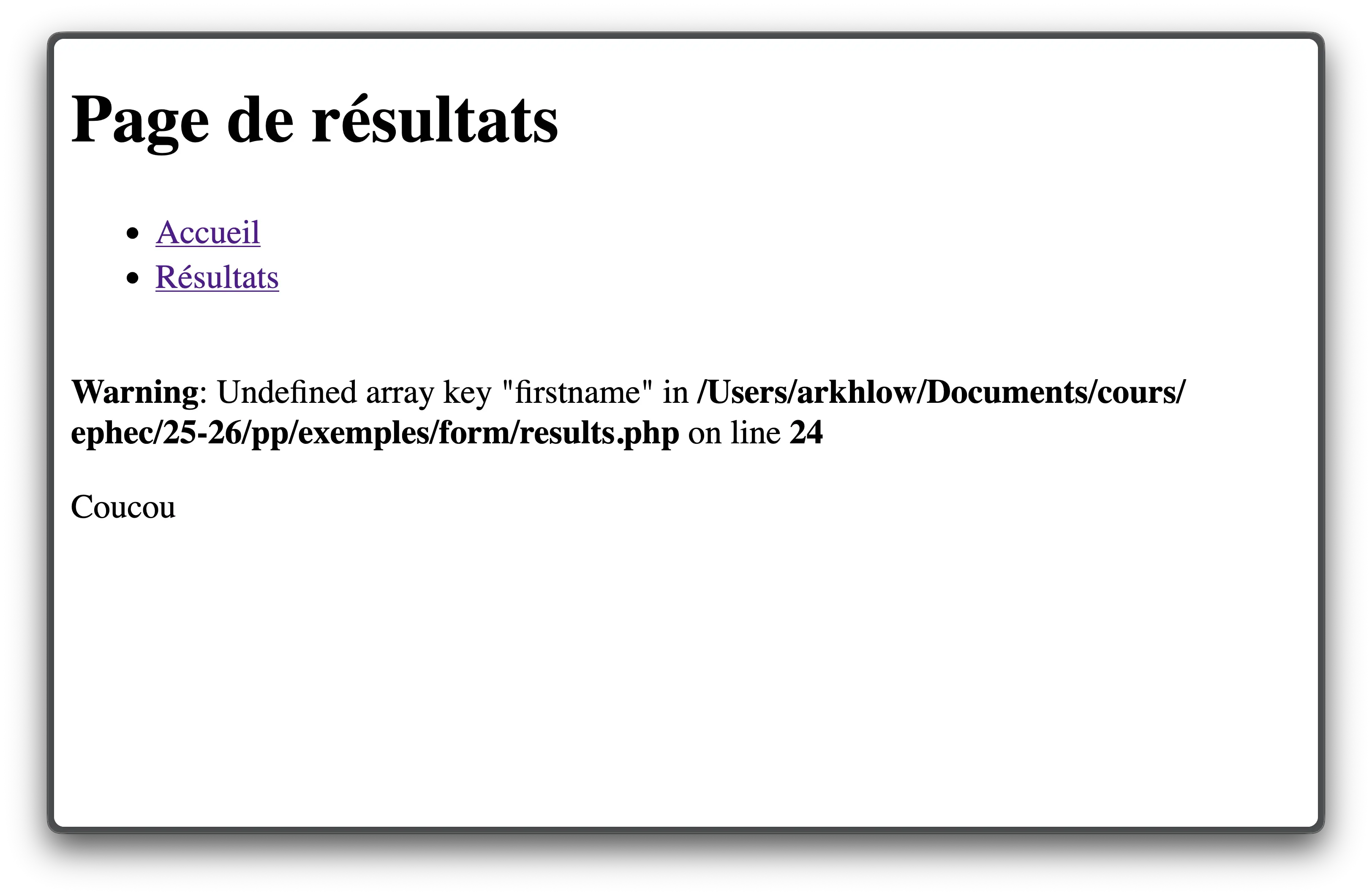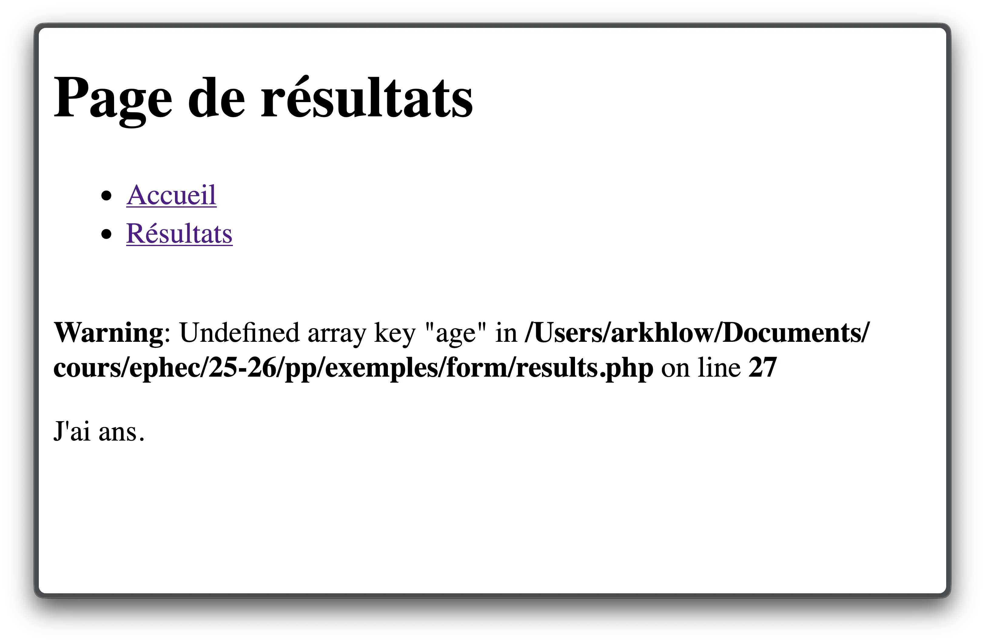 Maintenant que notre page results.php attend une valeur $_POST que se passe-t-il si on charge la page sans soumettre le formulaire ?