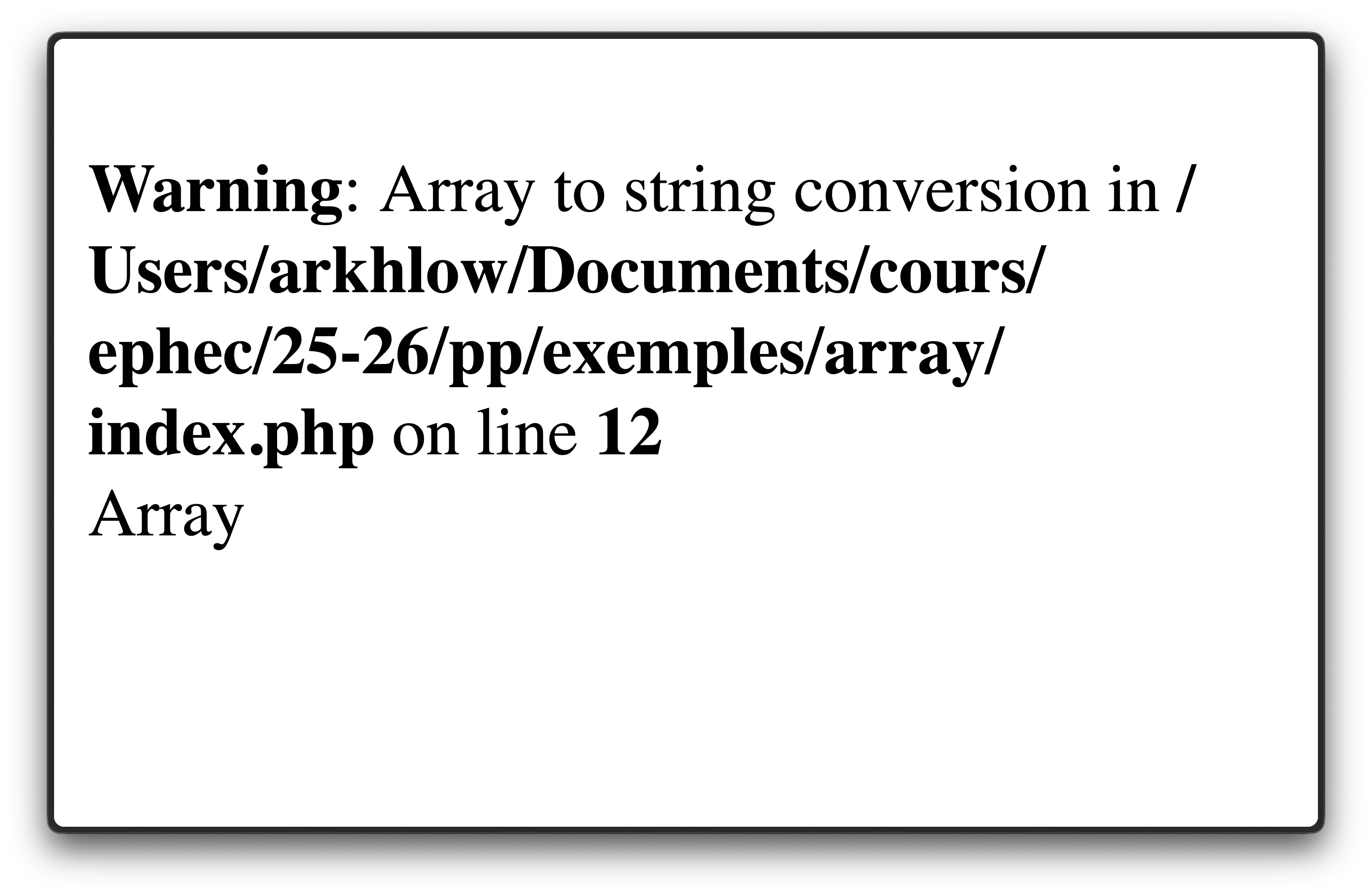 Contrairement aux autres types, un tableau ne peut pas facilement s'afficher depuis echo :