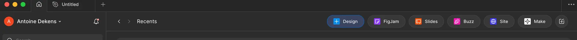 Pour créer un nouveau fichier, vous pouvez cliquer sur l'ongle design dans le menu en haut à droite du dashboard.