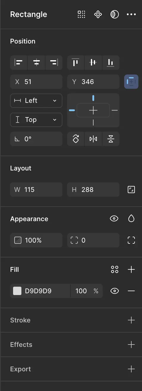 En séléctionnant notre rectangle, nous verrons que le panneau des propriétés contient maintenant les informations de notre élément. Elles vont nous permettre de changer plusieurs propriétés comme: