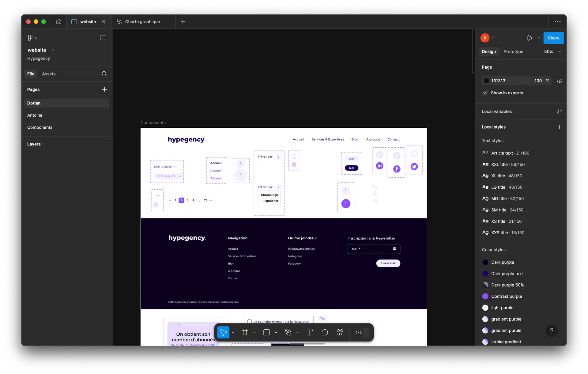 Ce panneau se retrouve à gauche sous forme de colonne. On y retrouve les pages, les calques et les assets qui composent votre fichier de design.