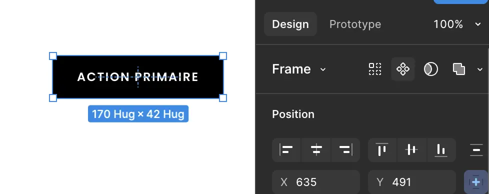 Partons d'une frame bouton. Dans notre panneau des propriétés tout au dessus à côté du nom de notre élément (frame) se trouve ce symbole . Il permet de transformer un élément en un composant.