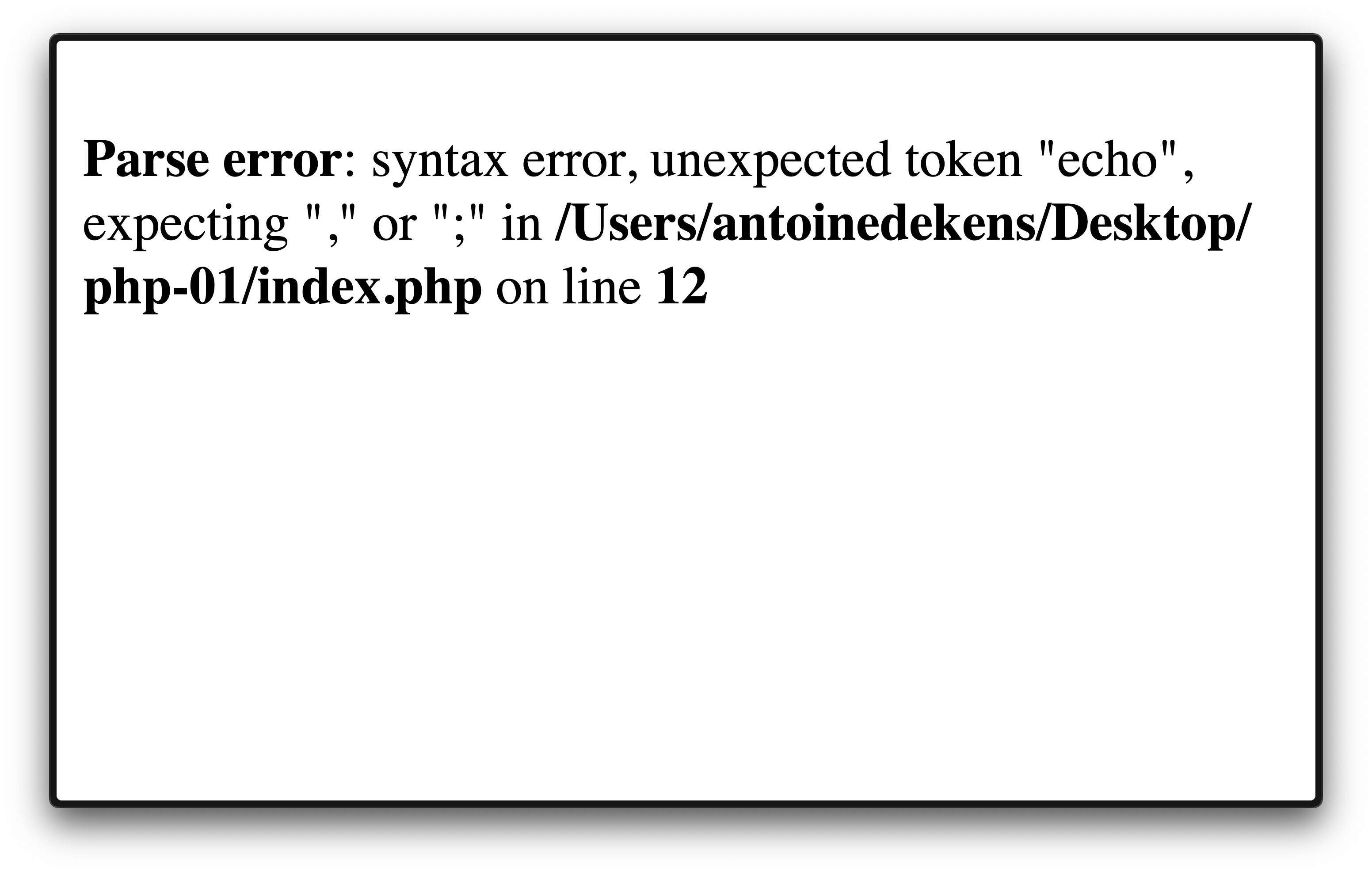 Il doit toujours y avoir un espace entre echo et ce que vous voulez afficher.// Début