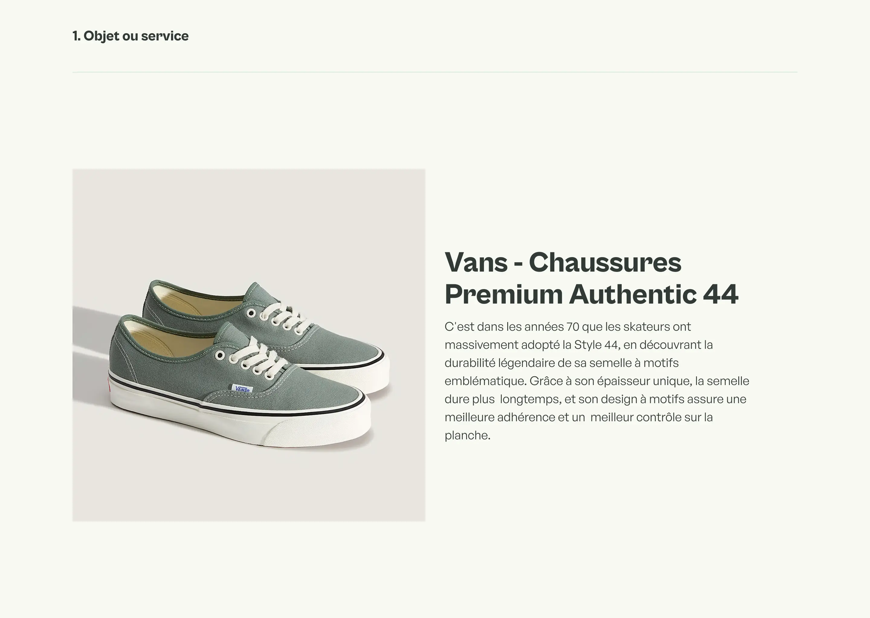 Présentation du produit avec un court texte remettant le contexte. Cela permet de cerner le sujet principal.