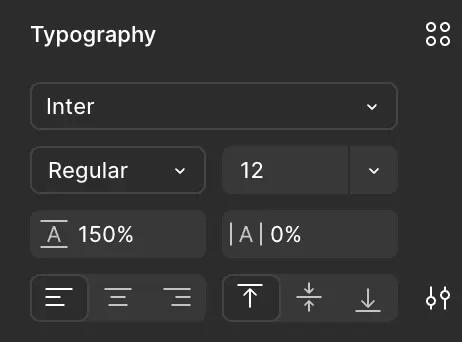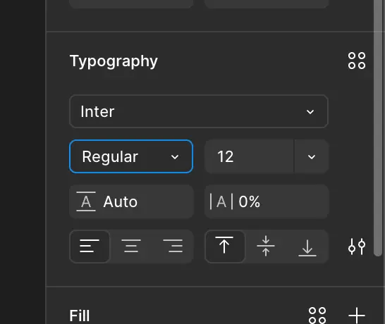 Le premier select box indique le nom de la police de caractères du texte selectionné. Par défaut, Figma utilise de l'Inter qui est une Google fonts.
